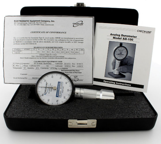 De Checkline Europe AD-100 analoge durometer is het resultaat van jarenlange ervaring in het aanbieden van durometers voor veeleisende toepassingen. De AD-100 heeft een meetvoet met een diameter van 18mm die stabiliteit biedt en voldoet aan alle internationale standaards. De durometer is ideaal voor allerlei toepassingen waarbij shore hardheid gemeten moet worden.