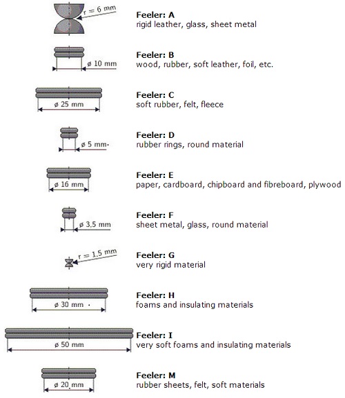 Voeler: C Voor zeer zacht rubber, vilt, non-woven materiaal. |