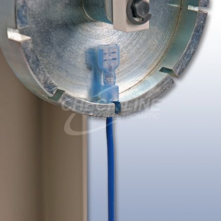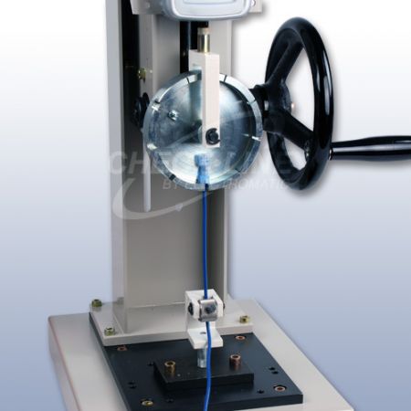 Specifiek ontworpen om de sterkte van draad/stekker verbindingen te testen. De bovenste greep bestaat uit een zelf-uitlijnend wiel met negen gelijk verdeelde inkepingen voor verschillende stekker afmetingen; een excentriek gemonteerde, zelf-aanspannende ondergreep zet de draad aan de andere zijde vast.