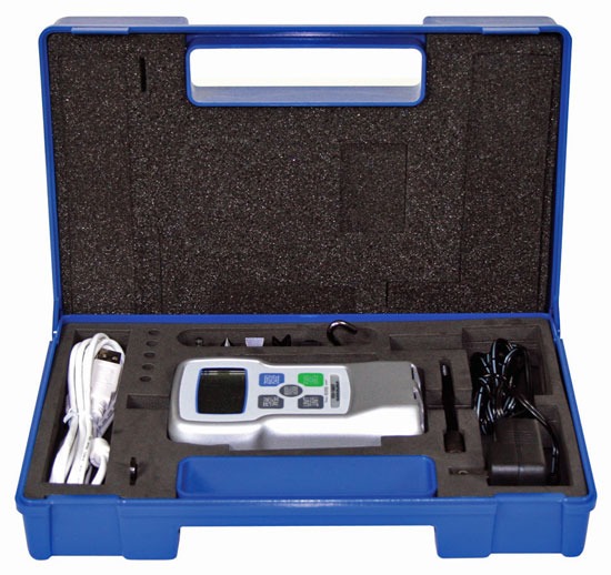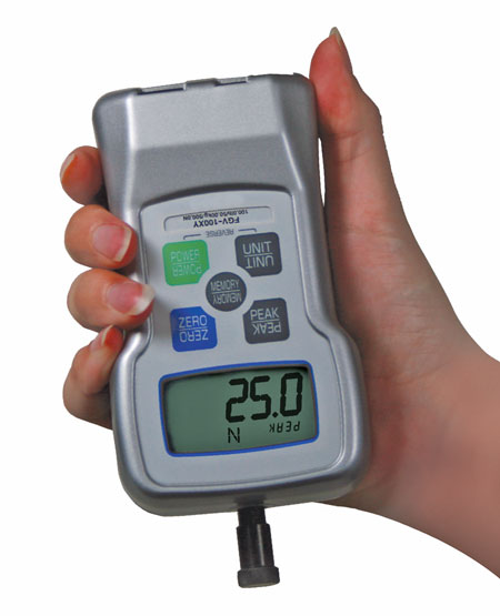 De geheel nieuwe FGV-XY serie krachtmeter loopt voorop in de industrie met een uitgebreide lijst aan eigenschappen waaronder USB uitgang, omkeerbaar display en een robuuste metalen behuizing. Elke meter wordt geleverd als een complete set met verschillende opschroefbare adapters. Dit maakt het een compleet kracht test instrument welke in een breed scala aan industriële sectoren gebruikt kan worden. Alle modellen zijn voorzien van een ingebouwd geheugen voor 1000 waarden, welke met behulp van de meegeleverde software en USB kabel eenvoudig naar een PC kunnen worden gedownload.