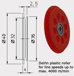 • Lichtgewicht, lage traagheid 32 mm diameter rollers voor snelheden tot 2000 m/min of, optioneel, tot 4000 m/min (K)