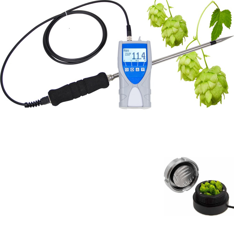 Voor het bepalen van het vochtgehalte van losse of gecomprimeerde hop, hopevenwichtsvochtgehalte, luchtvochtigheid van oven en conditioneringskamer, langetermijnregistratie van temperatuur- en klimaatgegevens.