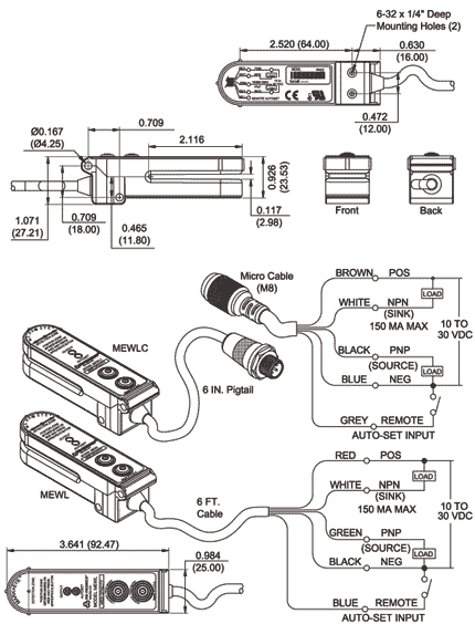 | Uitgang Transistors | 1 NPN en 1 PNP sensor uitgang transistors Uitgangen tot 150 mA (stroom limiet) Alle uitgangen zijn continu beschermd tegen kortsluiting |