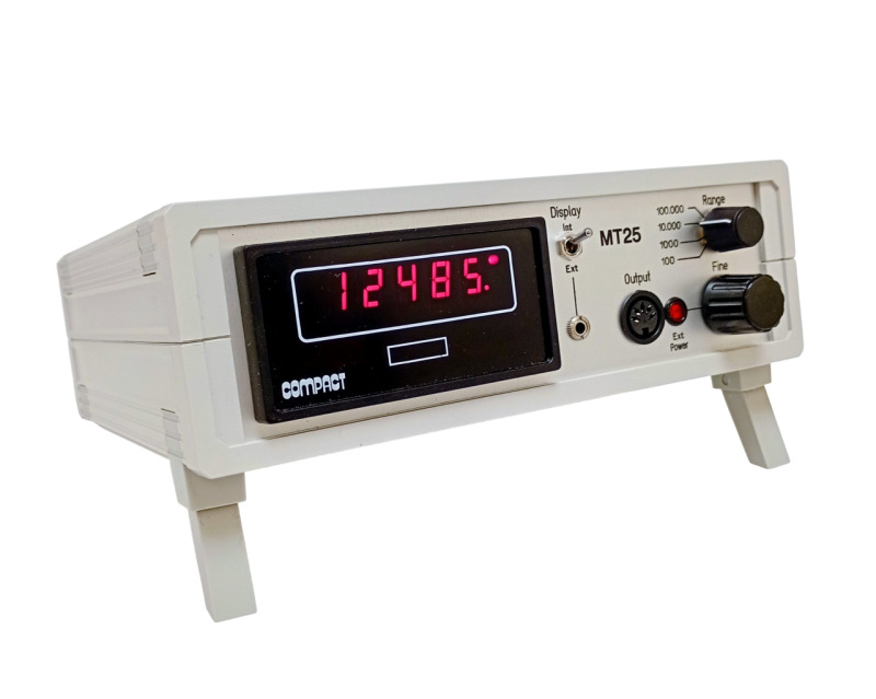 De MT25 is een optische toerenteller- en stroboscoopkalibrator voor dagelijkse controle en kalibratie van optische toerentellers, optische snelheidsopnemers en stroboscopen. De bediening volgt dezelfde aanpak als bij de eerdere MT2013, maar met een vernieuwde behuizing, gemoderniseerde laagspannings-elektronica en een universele externe voeding (meegeleverd)—waardoor regionale uitvoeringen niet nodig zijn.