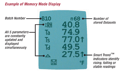 De PosiTector DPM komt compleet met een interne geheugenopslag. Alle 5 klimatologische parameters, plus de datum en tijd, kunnen opgeslagen worden met een enkele druk op een toets of automatisch met door de gebruiker ingestelde intervallen.
