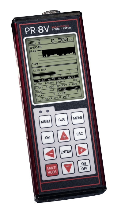 Belangrijke opmerking: De PR-8V Sonic Tester is omgedoopt tot RX8-DL. Alle specificaties en functionaliteit blijven beschikbaar onder de nieuwe modelnaam.
