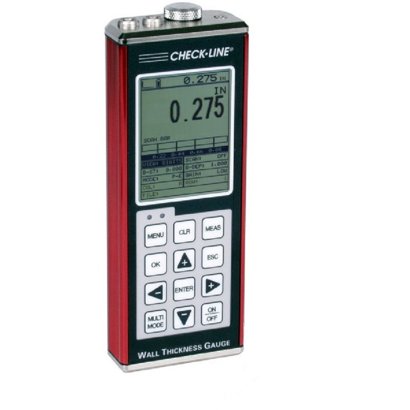 Bereik in staal met standaard transducer: | Pulse-Echo Mode: Pit and Flaw detectie metingen van 0.63 tot 254 mm Echo-Echo Mode: Metingen onder verf en coatings van 2,54 tot 102 mm Bereik varieert +/- afhankelijk van de dikte van de coating |