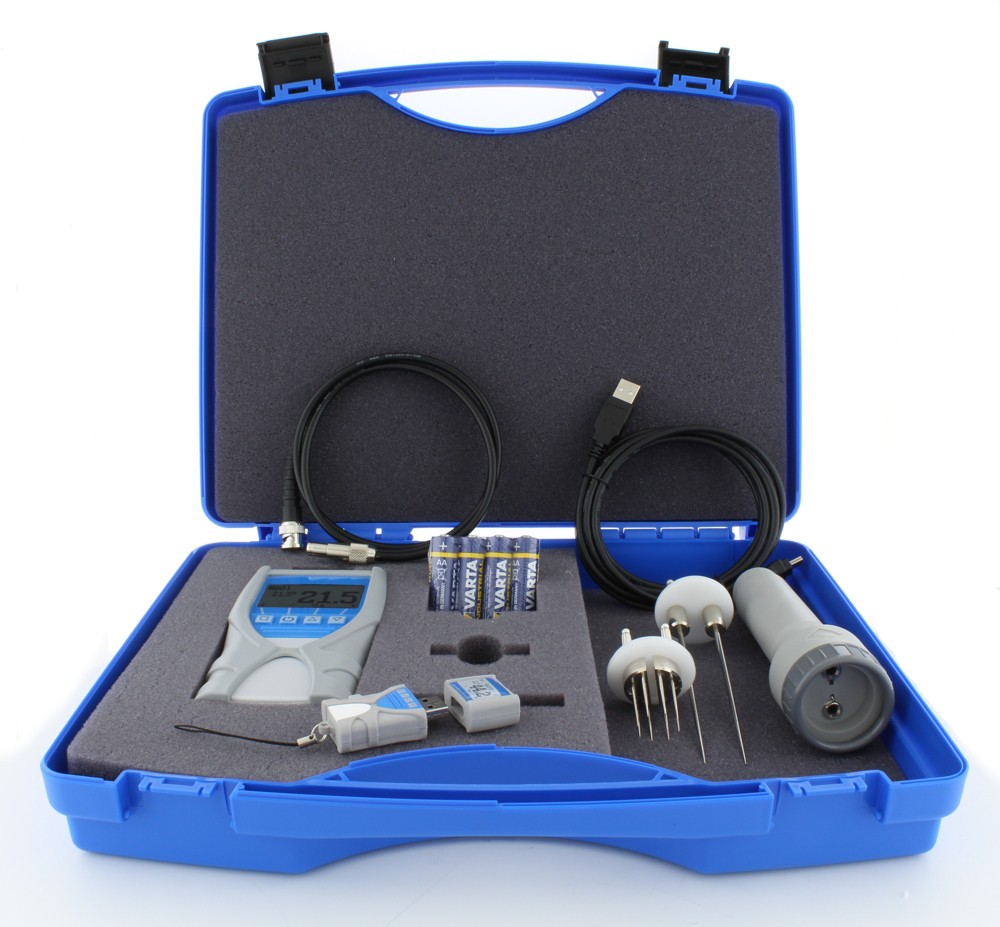 De TMT-425-USB vochtmeter wordt geleverd als een complete set bestaande uit: